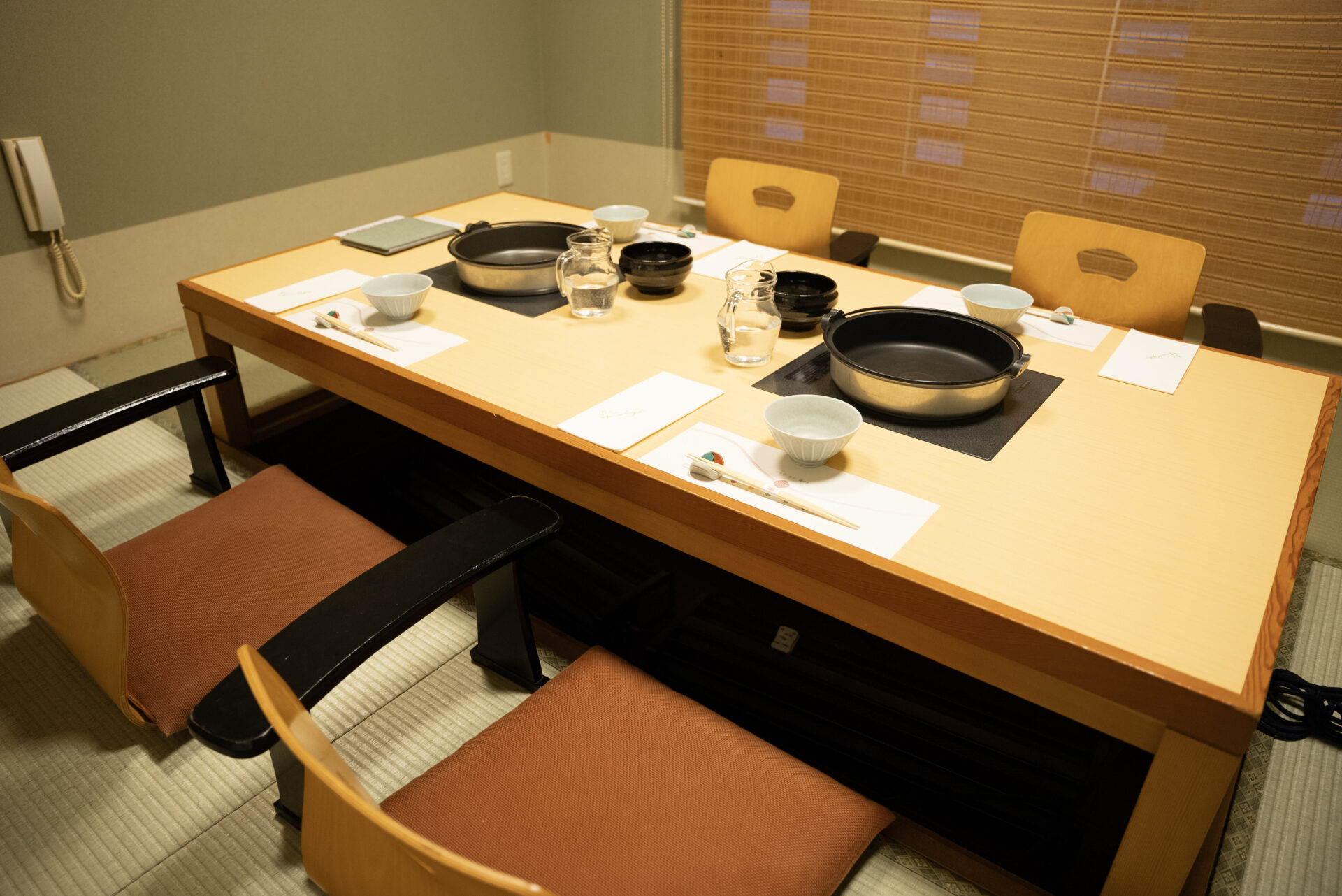 本店1樓及2樓皆為完全私人包廂。包廂內為沉穩靜謐的和風空間,無須在意其他顧客,能悠閒享用嚴選食材烹煮的鐵板燒、涮涮鍋與壽喜燒等料理。