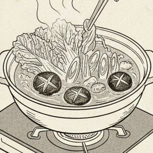在享用完肉類與蔬菜後,請利用鍋中餘下的濃郁原湯製作沾麵,為這頓美餐畫 上圓滿的句號。