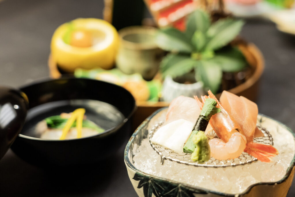 両家を結ぶ大切な一日にふさわしい、お祝い会席料理を味わっていただけます。